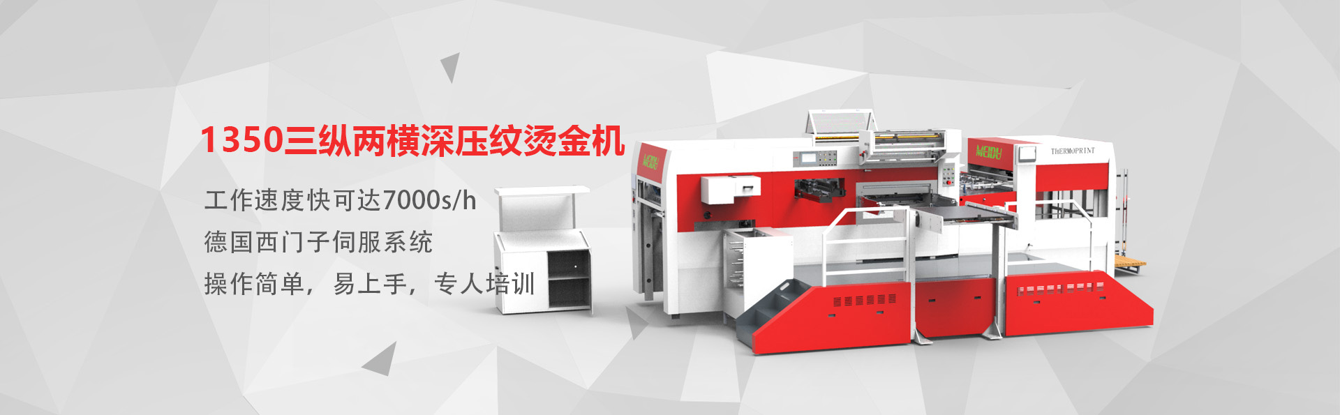 山東美度印刷設(shè)備有限公司是一家從事機械研究和制造的企業(yè),主要產(chǎn)品包括全自動平壓平三縱燙金機、全自動平壓平三縱兩橫燙金機、全自動平壓平深壓紋模切機、全自動平壓平深壓紋燙金機、全自動平壓平模切機等系列產(chǎn)品。經(jīng)過多年的發(fā)展,公司現(xiàn)已擁有多名的工業(yè)研發(fā)設(shè)計人員、經(jīng)驗豐富的生產(chǎn)安裝人員及嚴(yán)謹(jǐn)認(rèn)真的質(zhì)量檢驗人員,從外購件檢驗、零部件加工、整機裝配、出廠檢驗等各個流程均有嚴(yán)格質(zhì)量保證,從而保障了所生產(chǎn)設(shè)備的品質(zhì)。